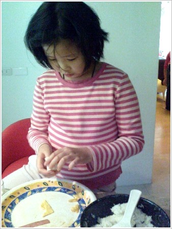 前幾天Christine帶她們做壽司,荳芽和容真有模有樣的做出造型可愛、味道鮮美的多種壽司。從洗切蔬果、壓壽司飯到包捲做造型,細細的算分釐、輕輕的捏出份量,專心一致得像準備端出豐盛佳餚的米其林大廚。